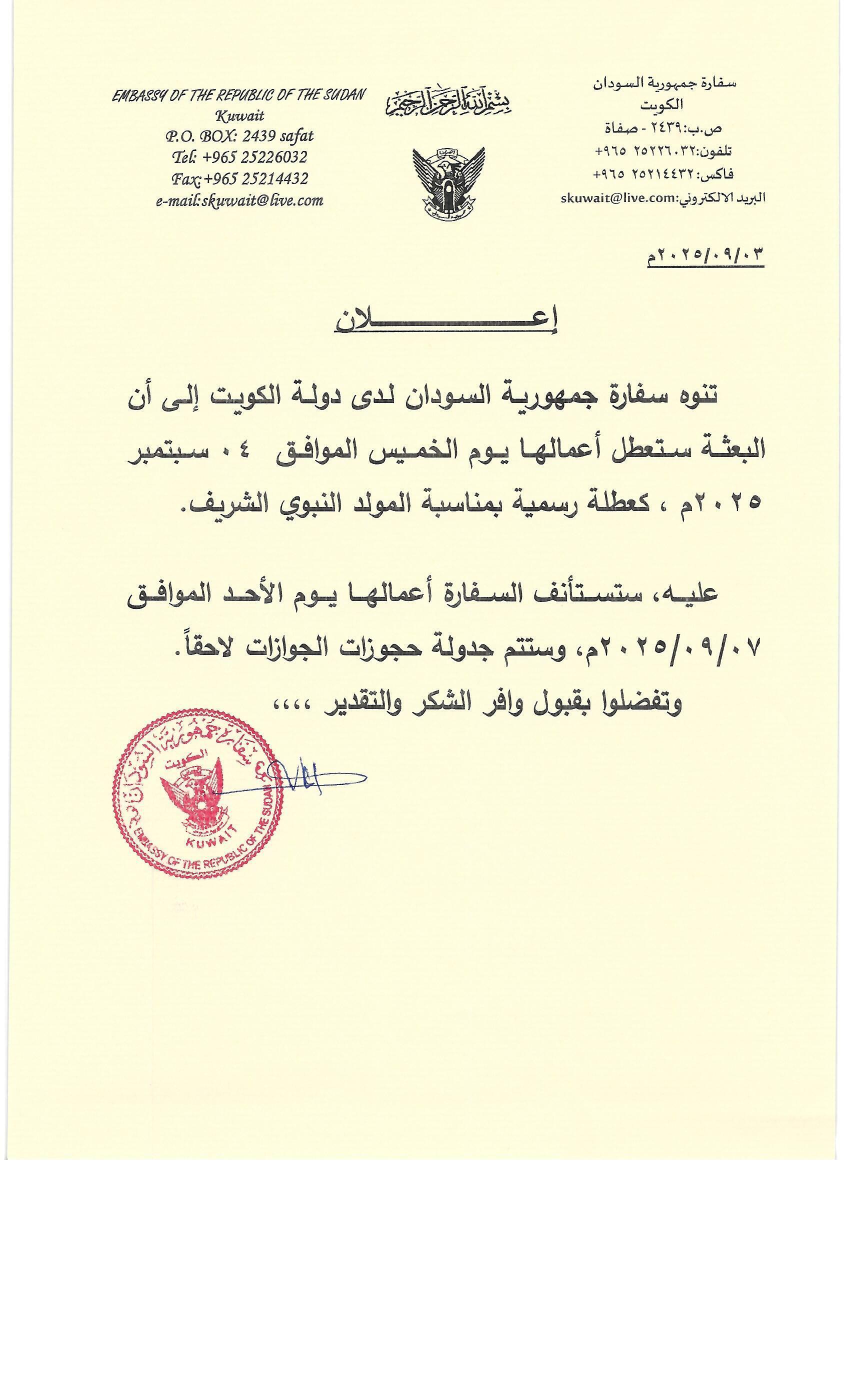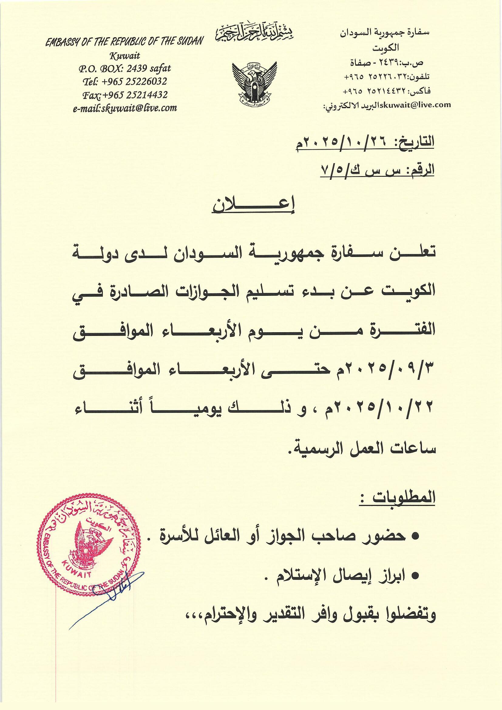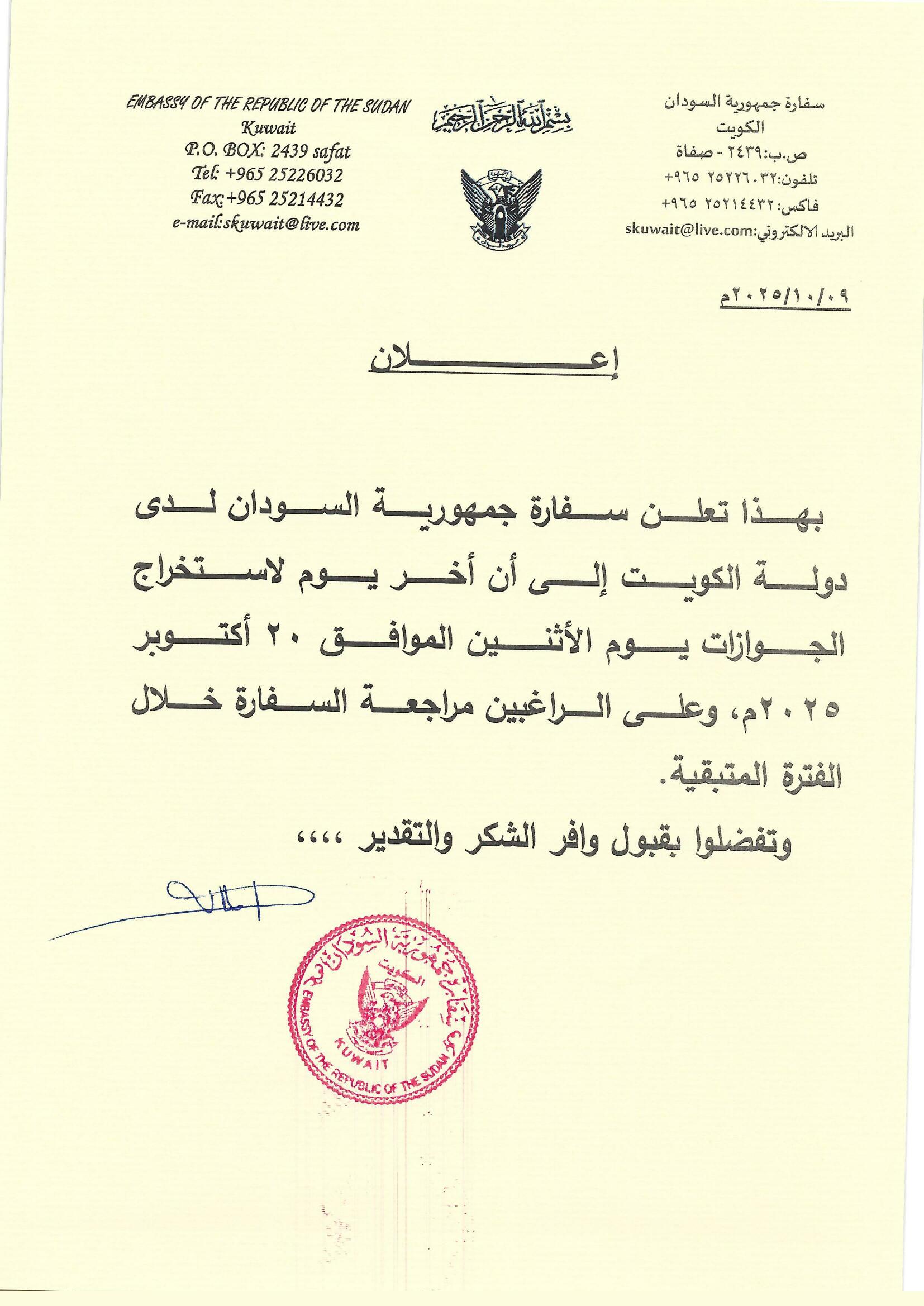 سفارة جمهورية السودان الكويت © جميع الحقوق محفوظة.