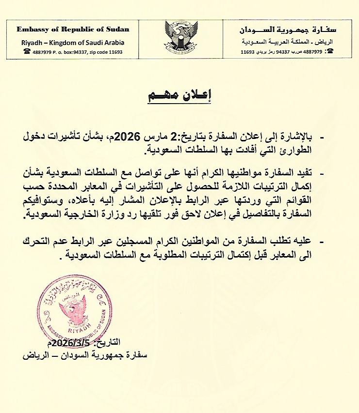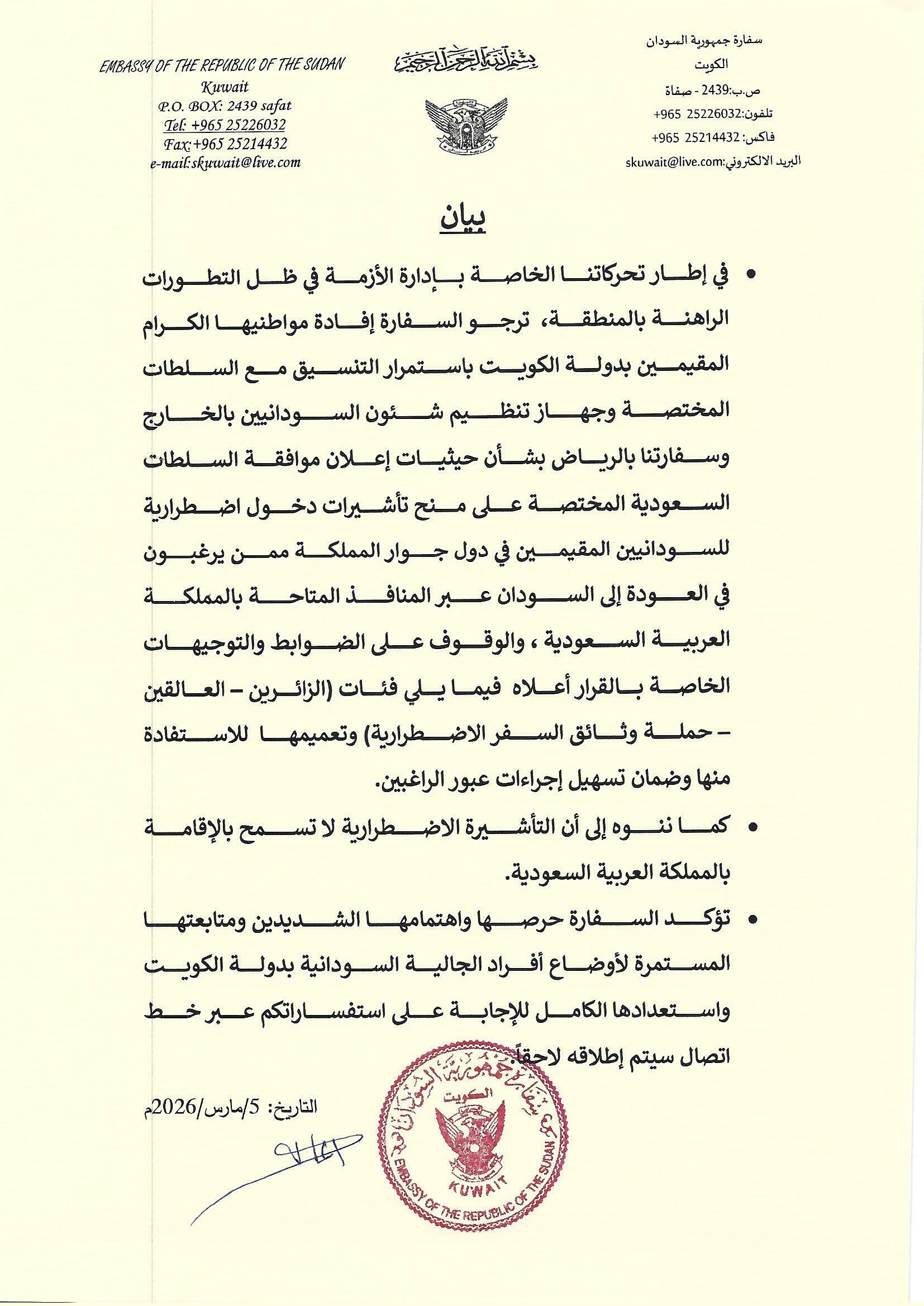 عليه، ستستأنف السفارة أعمالها يوم الأثنين الموافق 2024/12/2م.