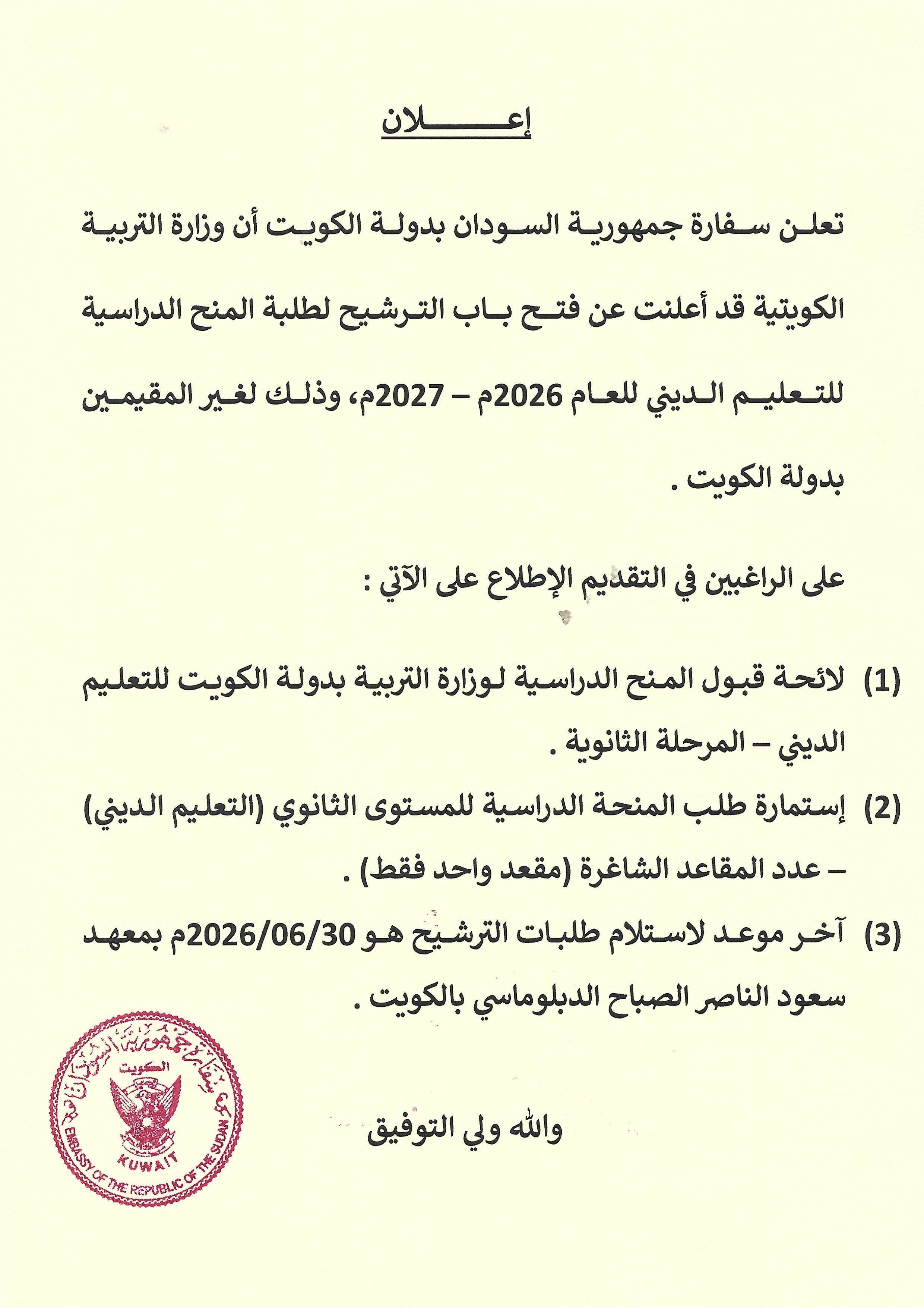 سفارة جمهورية السودان الكويت © جميع الحقوق محفوظة. sudan